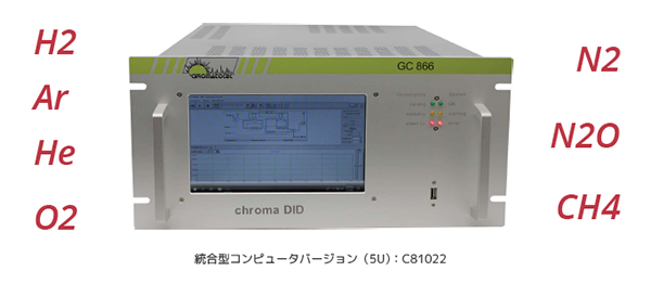 | 測定対象 | H2, O2, N2, CO, CH4, CO2, N2O, Ar(オプション) | |