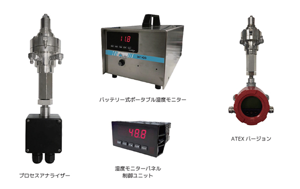 - 高速応答: 配管接続後、10分以内での応答が可能です(5 ppm以下の低濃度水分であっても)。