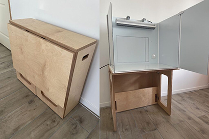 テーブルラボ・ソロに、より耐久性を備えた木製の箱のバージョンも用意しています。プロフェッショナルな空間にも自然に溶け込む外観で、再生可能な材料を使用し、環境へ配慮したサステナブルな製品です。